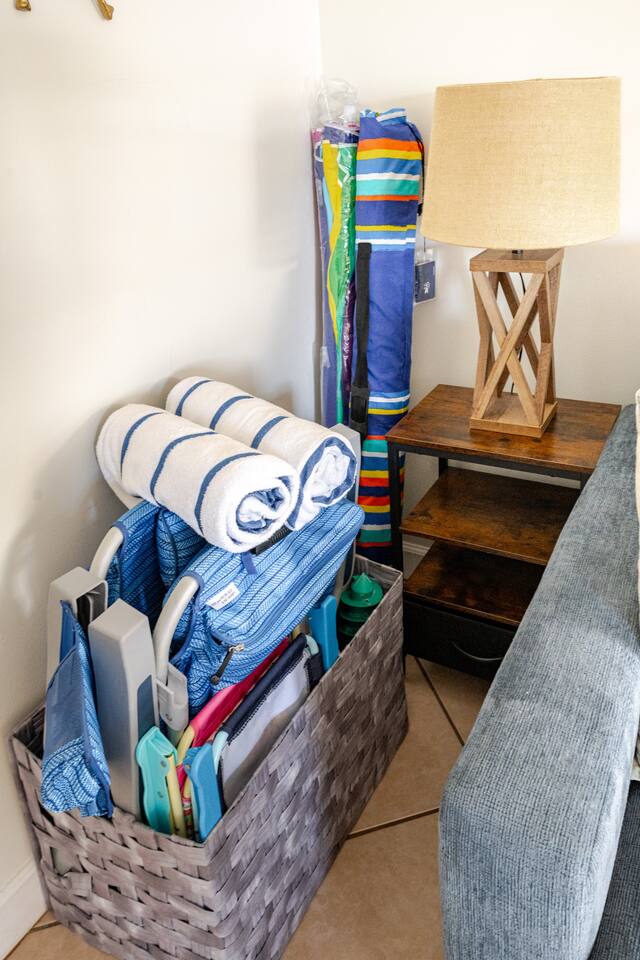 - Beach essentials Beach towels, umbrella, beach blanket, snorkeling gear